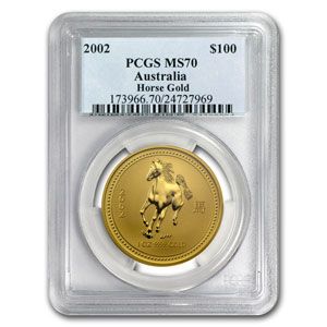 2002 1 oz Gold Year of the Horse Lunar Coin (Series 1) **|**|** 2002 1 oz Gold Year of the Horse Lunar Coin (Series 1) PCGS MS-70 ; MSRP: $2385