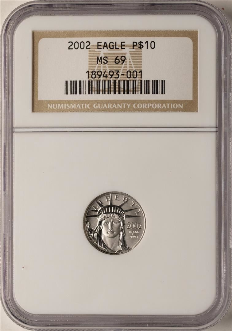 One 2002 $10 Platinum American Eagle Coin NGC MS69. NGC Certified.