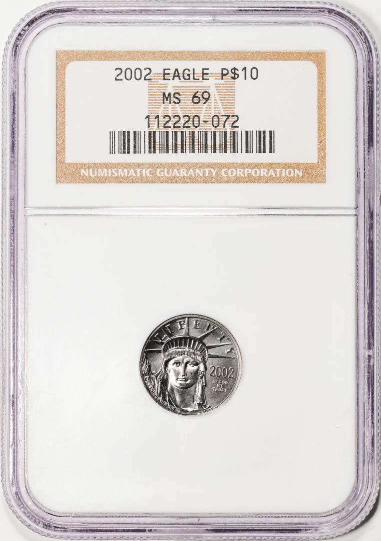 One 2002 $10 Platinum American Eagle Coin NGC MS69. NGC Certified.