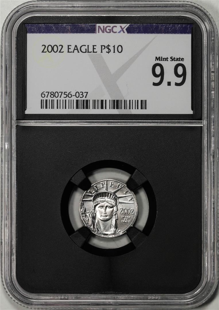 One 2002 $10 Platinum American Eagle Coin NGCX Mint State 9.9. NGCX Certified.