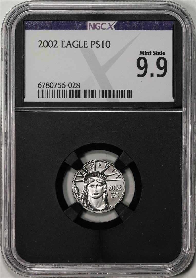 One 2002 $10 Platinum American Eagle Coin NGCX Mint State 9.9. NGCX Certified.