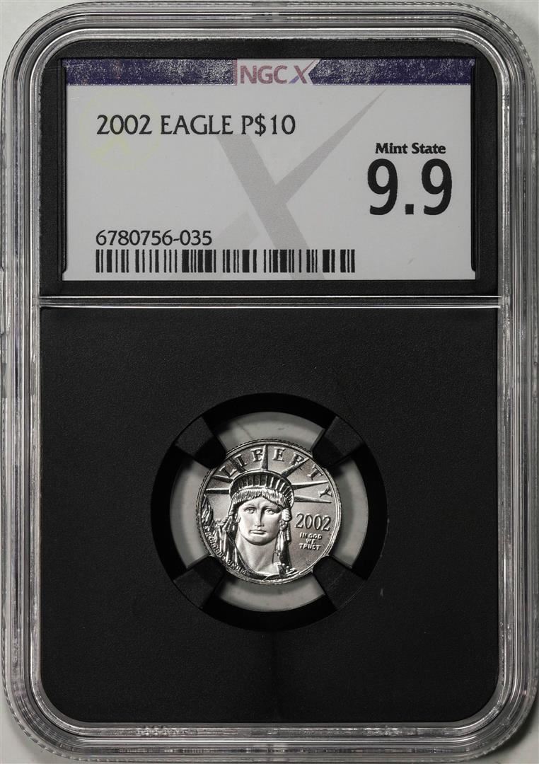 One 2002 $10 Platinum American Eagle Coin NGCX Mint State 9.9. NGCX Certified.