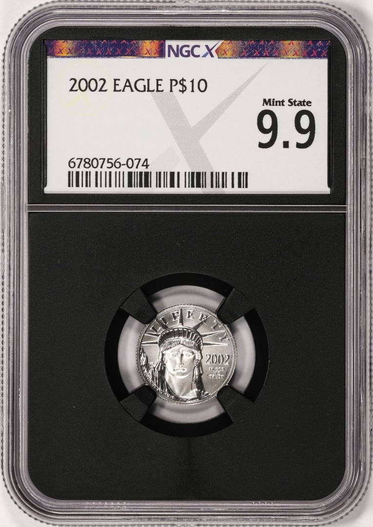 One 2002 $10 Platinum American Eagle Coin NGCX Mint State 9.9. NGCX Certified.