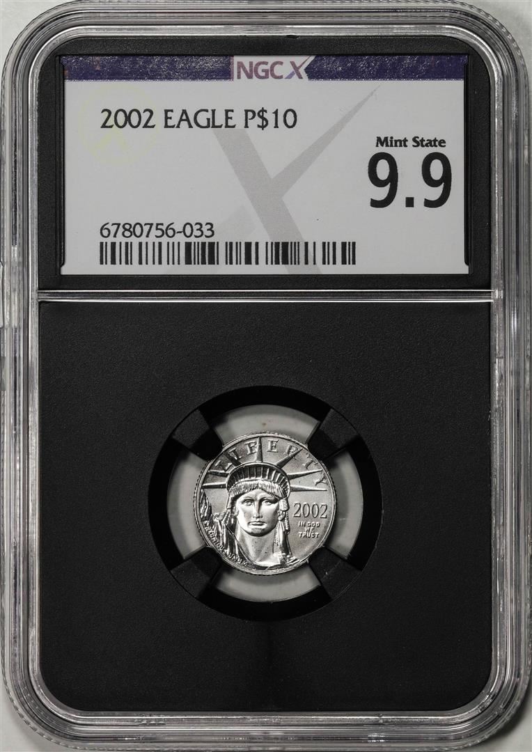 One 2002 $10 Platinum American Eagle Coin NGCX Mint State 9.9. NGCX Certified.
