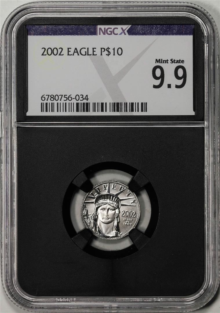 One 2002 $10 Platinum American Eagle Coin NGCX Mint State 9.9. NGCX Certified.