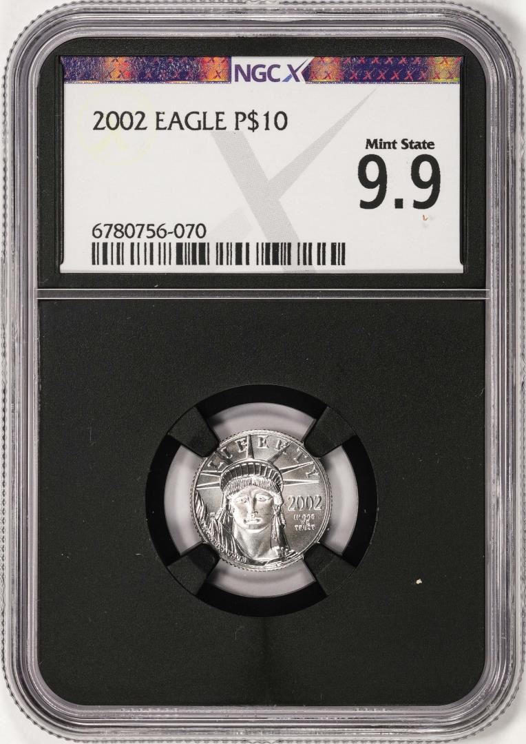 One 2002 $10 Platinum American Eagle Coin NGCX Mint State 9.9. NGCX Certified.