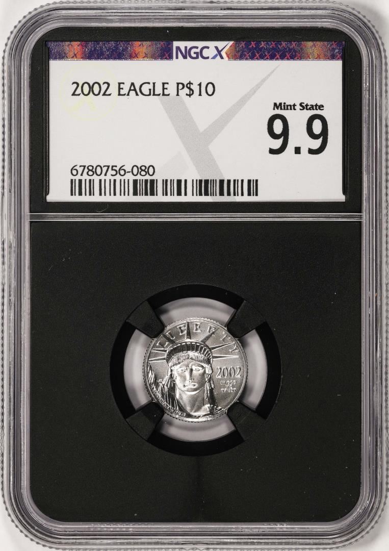 One 2002 $10 Platinum American Eagle Coin NGCX Mint State 9.9. NGCX Certified.