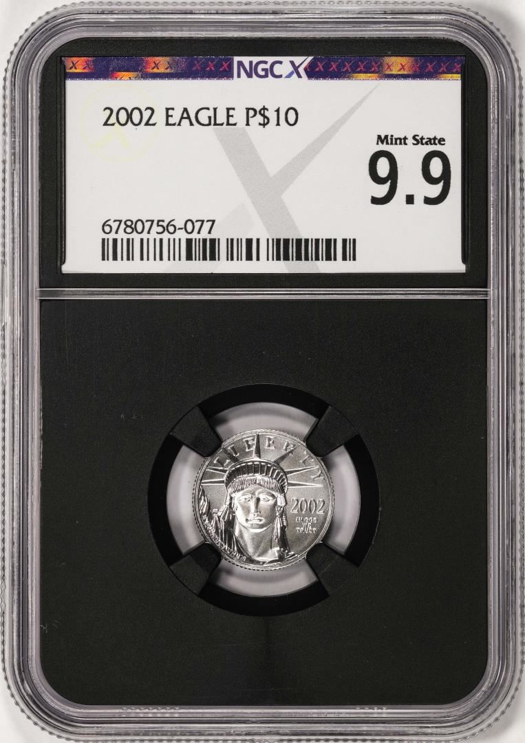 One 2002 $10 Platinum American Eagle Coin NGCX Mint State 9.9. NGCX Certified.