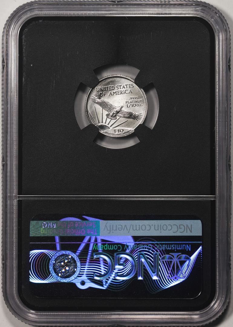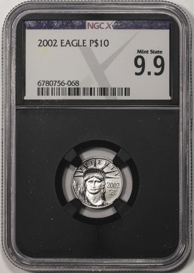 One 2002 $10 Platinum American Eagle Coin NGCX Mint State 9.9. NGCX Certified.