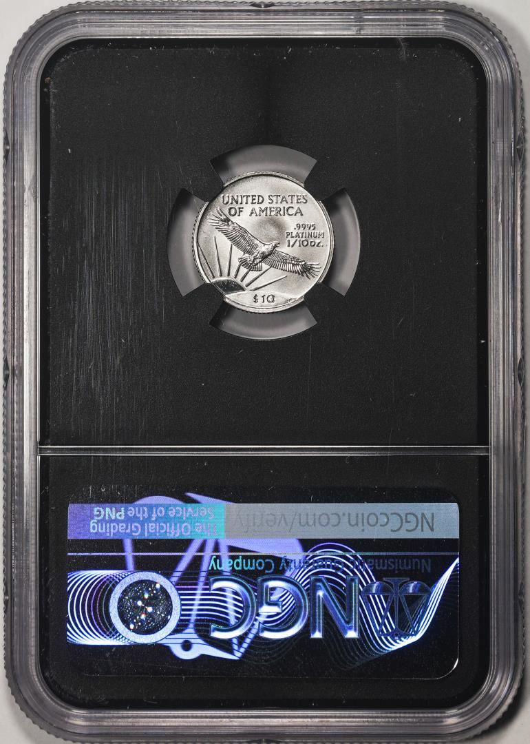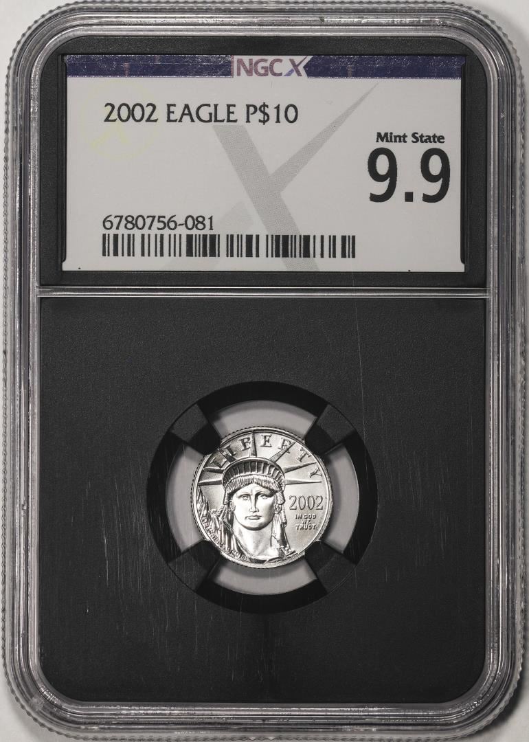 One 2002 $10 Platinum American Eagle Coin NGCX Mint State 9.9. NGCX Certified.