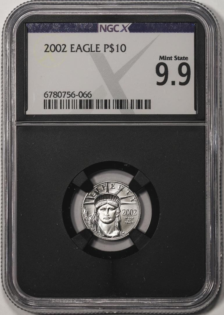 One 2002 $10 Platinum American Eagle Coin NGCX Mint State 9.9. NGCX Certified.