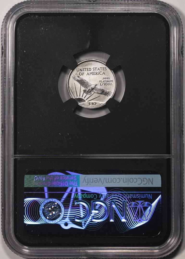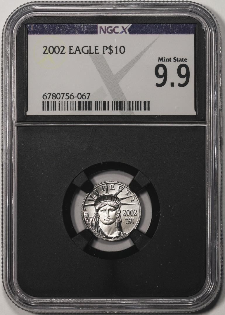 One 2002 $10 Platinum American Eagle Coin NGCX Mint State 9.9. NGCX Certified.