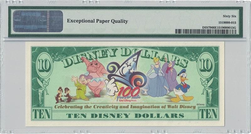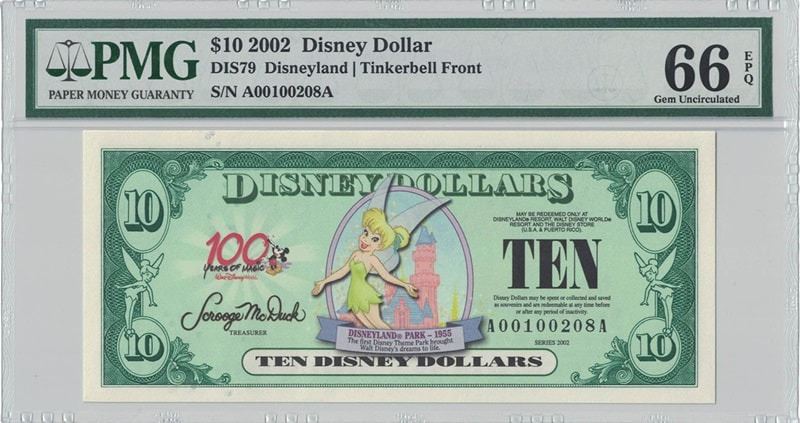 One 2002 $10 Tinkerbell Disney Dollar PMG 66EPQ.