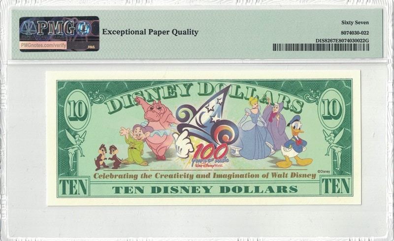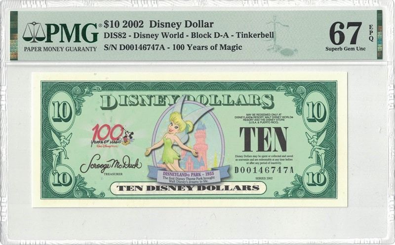 One 2002 $10 Tinkerbell Disney Dollar PMG 67EPQ.