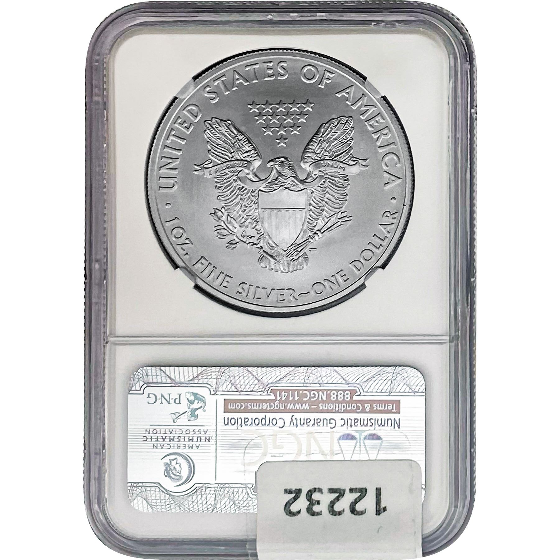 e. Coins sold referencing a third-party grading service are sold “AS IS” without any express or implied warranty, except for a guarantee by GSA that they are genuine. Removal or alteration of the holder, voids all of Bidder’s claims concerning that Product. Certain warranties may be available from the grading services and Bidders are referred to them for further details: Numismatic Guaranty Corporation (NGC), PO Box 4776, Sarasota, FL 34230, www.ngccoin.com/services/writtenguarantee.asp; Professional Coin Grading Services (PCGS), PO Box 9458, Newport Beach, CA 92658, www.pcgs.com/guarantee.html; ANACS, 6555 S. Kenton St., Ste. 303, Englewood, CO 80111; and Independent Coin Grading Co. (ICG), 7901 East Bellview, Ave., Suite 50, Englewood, CO 80111.
