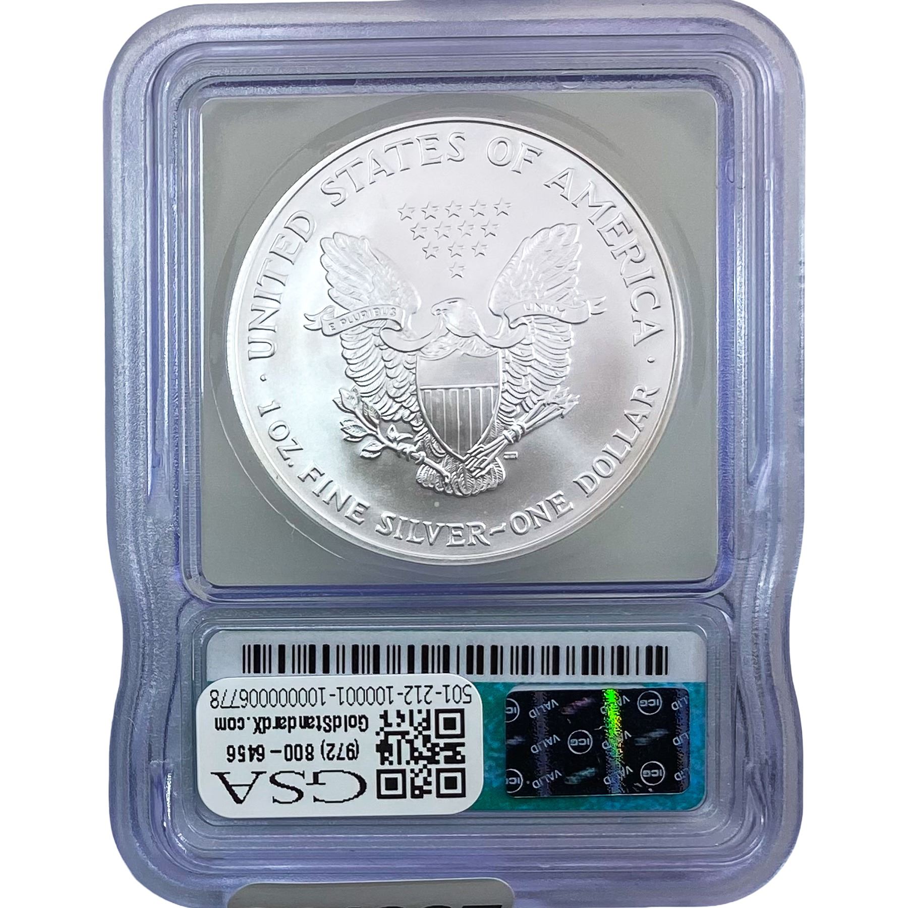 e. Coins sold referencing a third-party grading service are sold “AS IS” without any express or implied warranty, except for a guarantee by GSA that they are genuine. Removal or alteration of the holder, voids all of Bidder’s claims concerning that Product. Certain warranties may be available from the grading services and Bidders are referred to them for further details: Numismatic Guaranty Corporation (NGC), PO Box 4776, Sarasota, FL 34230, www.ngccoin.com/services/writtenguarantee.asp; Professional Coin Grading Services (PCGS), PO Box 9458, Newport Beach, CA 92658, www.pcgs.com/guarantee.html; ANACS, 6555 S. Kenton St., Ste. 303, Englewood, CO 80111; and Independent Coin Grading Co. (ICG), 7901 East Bellview, Ave., Suite 50, Englewood, CO 80111.