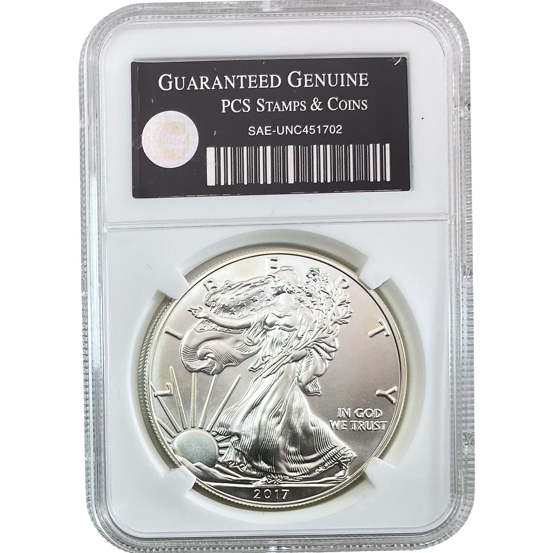 COINS AND CURRENCY LISTED IN GSA’S CATALOG AS GRADED AND ENCAPSULATED BY PCGS, NGC, ANACS, ICG, PCGS CURRENCY, PMG, PCGS BANKNOTE GRADING, CMC OR ANY OTHER THIRD-PARTY GRADING SERVICE ARE LIKEWISE SOLD “AS-IS” EXCEPT AS EXPRESSLY SET FORTH HEREIN. ALL THIRD-PARTY GRADING SERVICE GUARANTEES, INCLUDING AUTHENTICITY, ARE THE SOLE RESPONSIBILITY OF THE THIRD-PARTY GRADING SERVICE AND NOT WARRANTIES OR GUARANTEES OF GSA. BIDDERS SHOULD CONTACT THESE THIRD-PARTY GRADING SERVICES DIRECTLY WITH RESPECT TO ANY CLAIMS OR QUESTIONS THEY MAY HAVE CONCERNING THEIR GUARANTEES AND WARRANTIES. BIDDERS ACKNOWLEDGE AND AGREE THAT AUCTIONEER IS NOT BOUND BY OR LIABLE FOR ANY OPINION OR CERTIFICATION BY ANY THIRD-PARTY GRADING SERVICE. REMOVAL OF A PRODUCT FROM ITS PROTECTIVE CASING OR HOLDER OR ALTERATION OF ANY COIN HOLDER WAIVES ALL RIGHTS CONCERNING THE PRODUCT CONTAINED THEREIN.