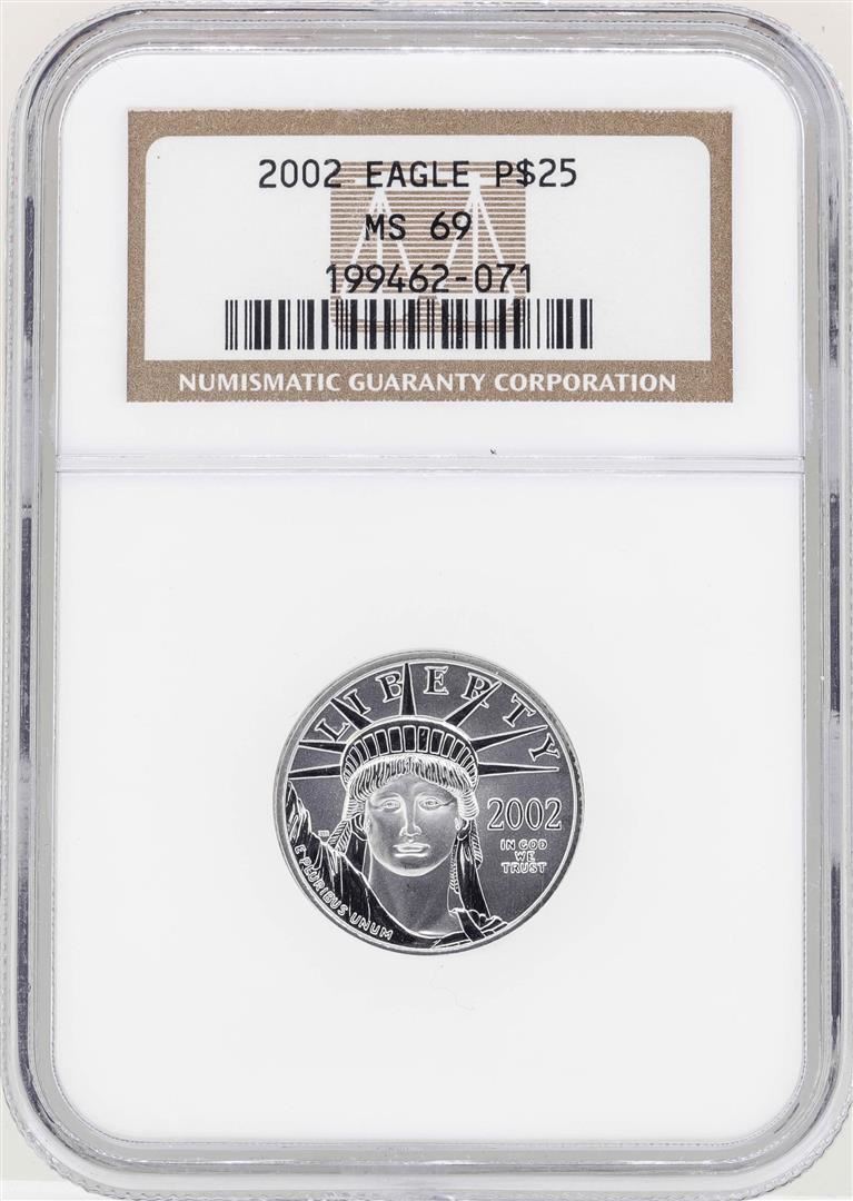 One 2002 $25 Platinum American Eagle Coin NGC MS69. NGC Certified.