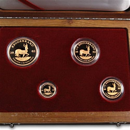2002 4-Coin Proof Gold South African Krugerrand Set **|**|** Year: 2002 ; Mint Mark: Proof ; Denomination: 10 Euro ; MSRP: $5400