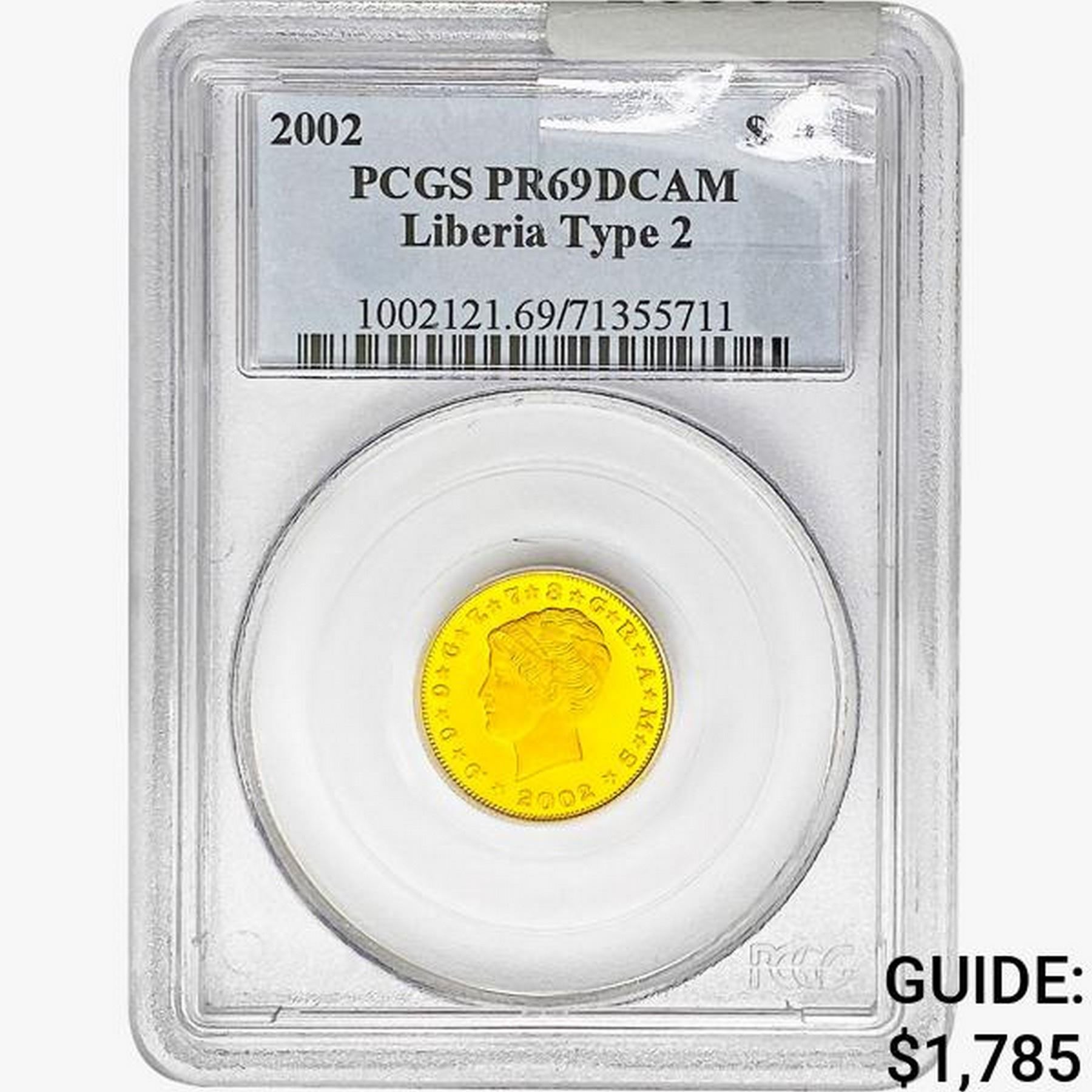 2002 $40 1/4oz Liberia Type 2 PCGS PR69 DCAM