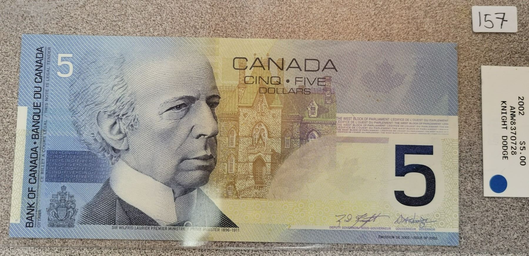 2002 $5.00 ANW8370718 Knight Dodge nice crisp bright colored bill