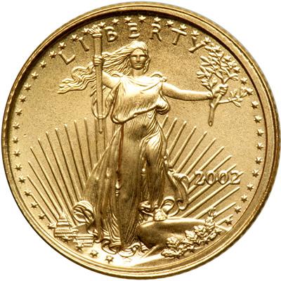 2002 $5.00 Gold Eagle. Gem Brilliant Uncirculated. 10th oz.