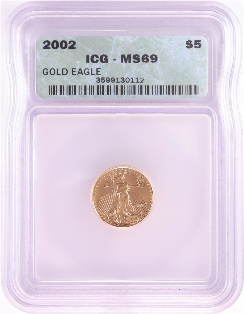 One 2002 $5 American Gold Eagle Coin ICG MS69. ICG Certified.