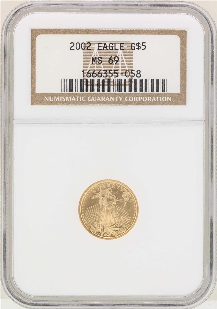 One 2002 $5 American Gold Eagle Coin NGC MS69. NGC Certified.