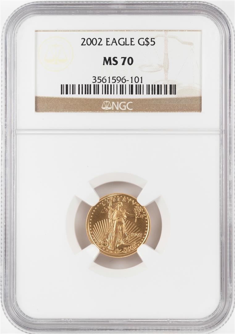 One 2002 $5 American Gold Eagle Coin NGC MS70. NGC Certified.