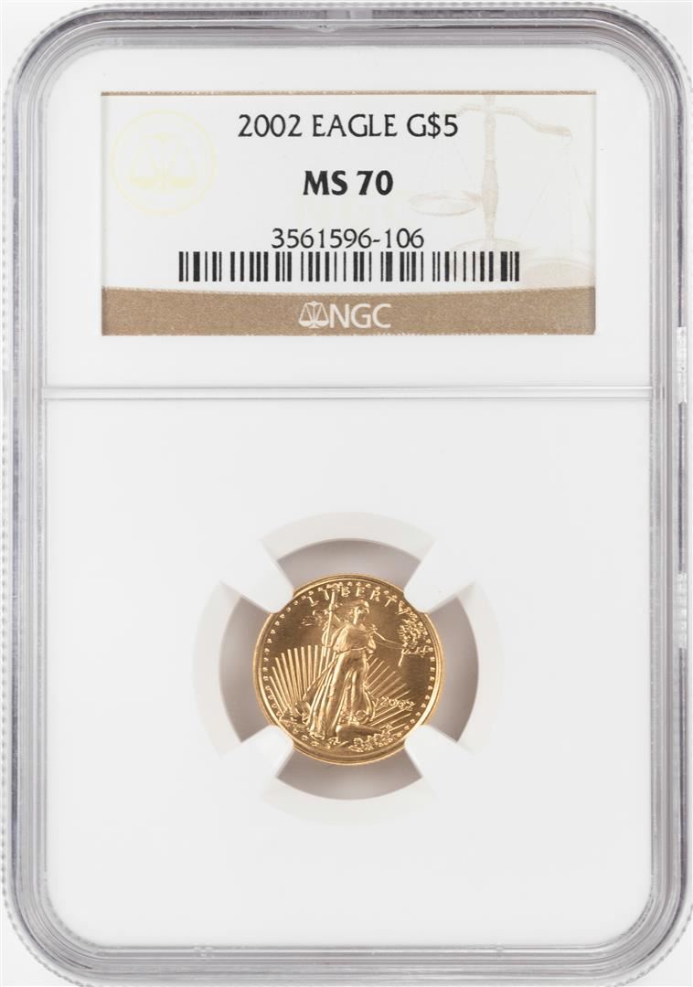 One 2002 $5 American Gold Eagle Coin NGC MS70. NGC Certified.