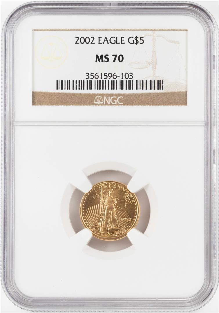 One 2002 $5 American Gold Eagle Coin NGC MS70. NGC Certified.