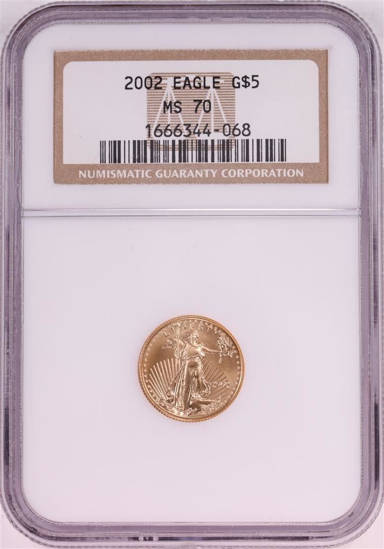 One 2002 $5 American Gold Eagle Coin NGC MS70. NGC Certified.