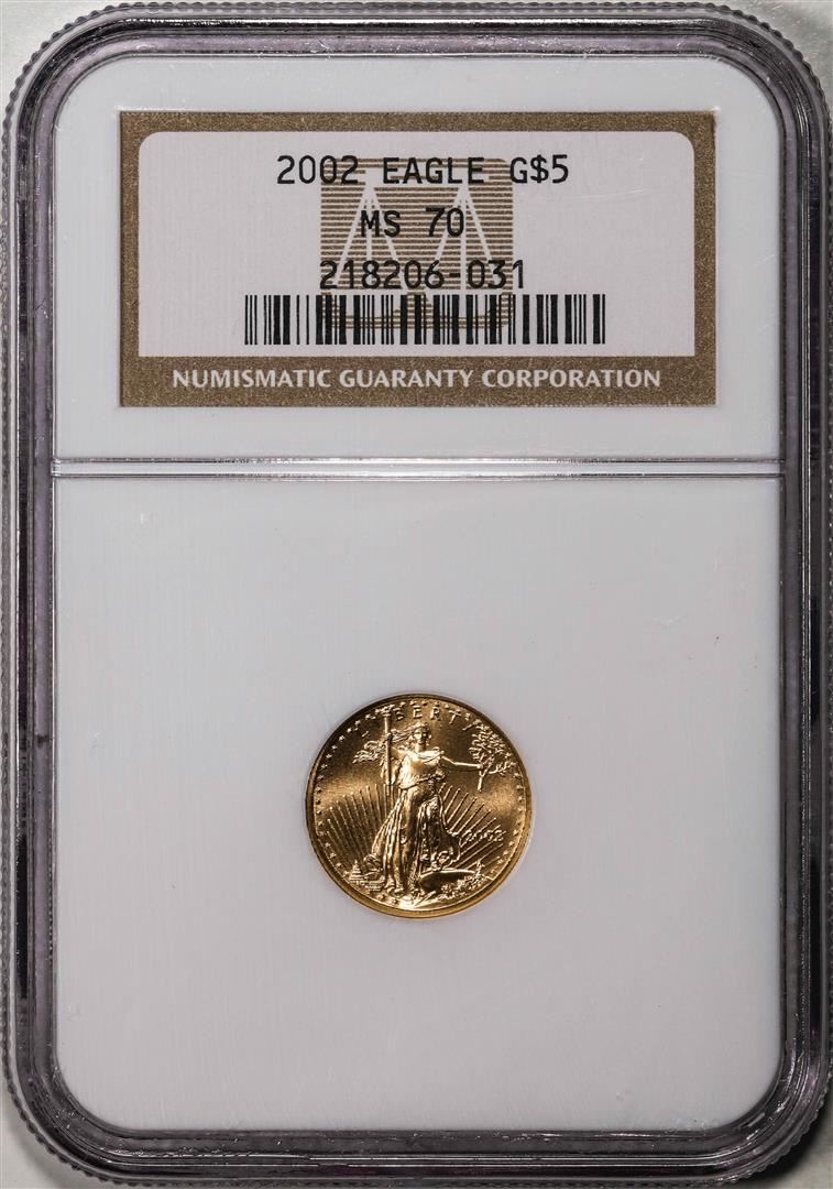One 2002 $5 American Gold Eagle Coin NGC MS70. NGC Certified.