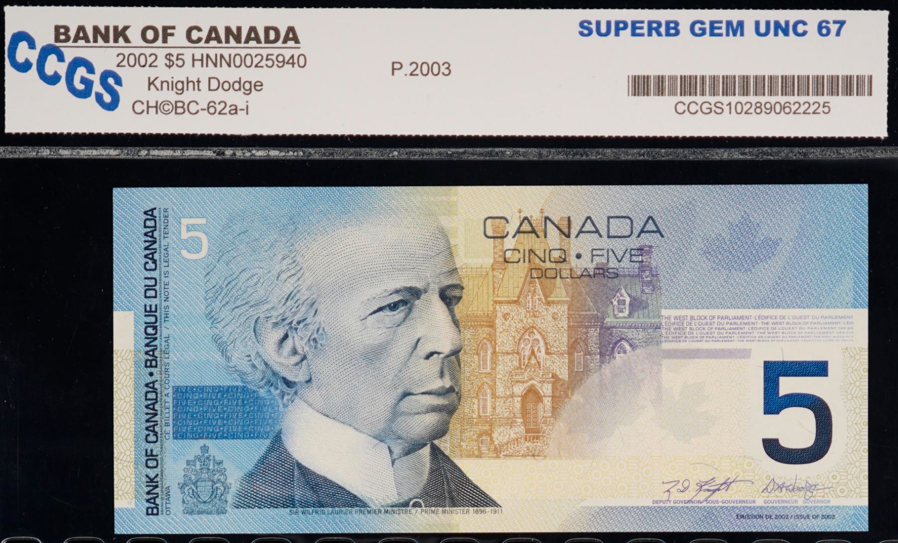 2002 $5 BC-62a-i # HNN0025940 CCGS Superb Gem Uncirculated-67