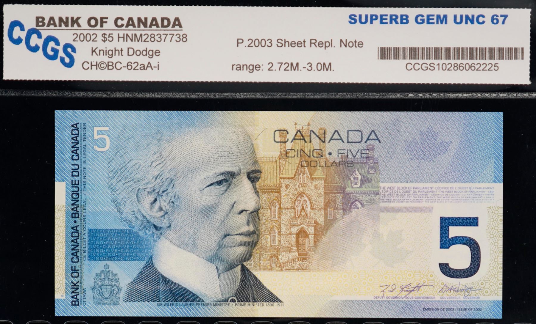 2002 $5 BC-62aA-i #HNM2837738 "2.72M - 3M" CCGS Superb Gem Uncirculated-67