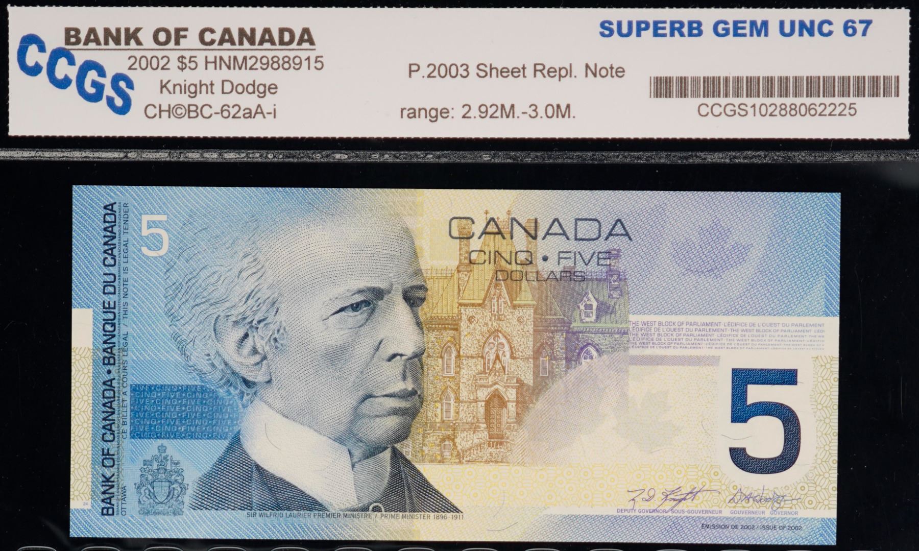 2002 $5 BC-62aA-i # HNM2988915 "2.92M - 3M" CCGS Superb Gem Uncirculated-67