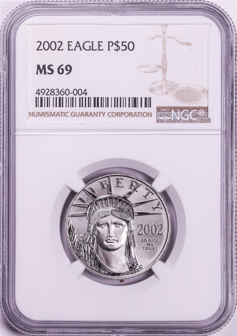 One 2002 $50 American Platinum Eagle Coin NGC MS69. NGC Certified.