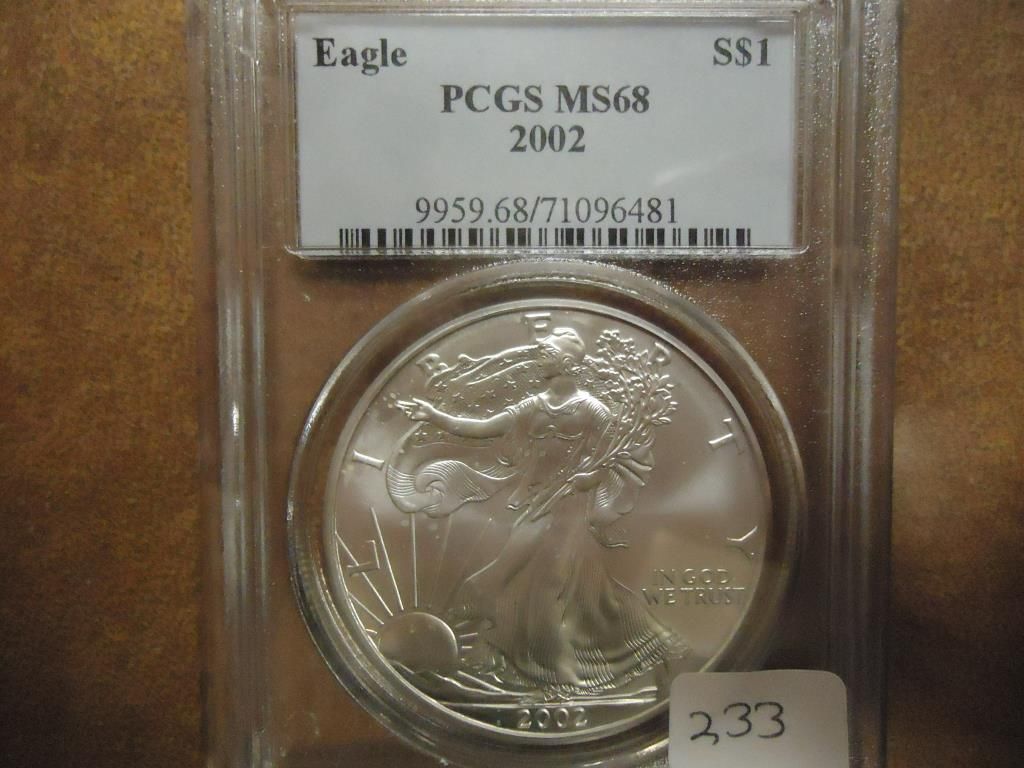 2002 AMERICAN SILVER EAGLE PCGS MS68