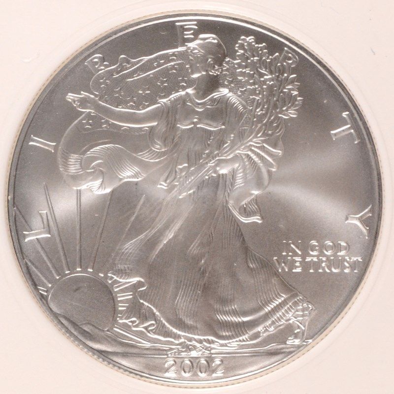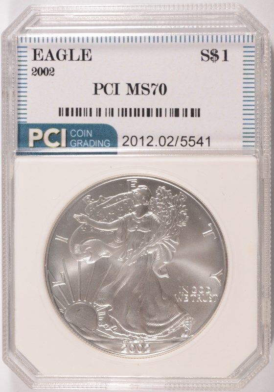 2002 AMERICAN SILVER EAGLE, PCI MS-70 RARE TRENDS PRICE $1250.00