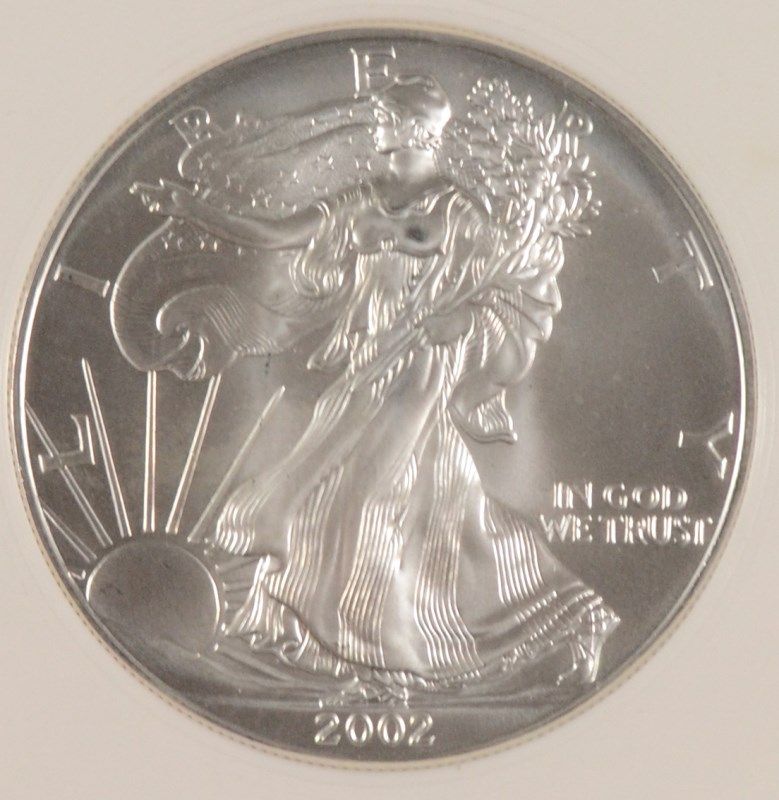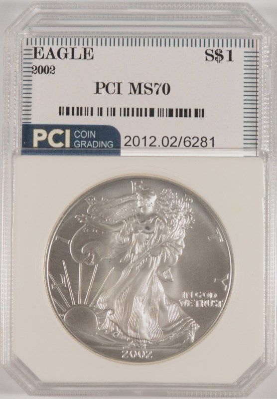 2002 AMERICAN SILVER EAGLE, PCI MS-70 RARE TRENDS PRICE $1250.00