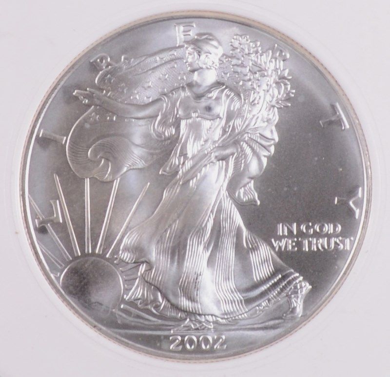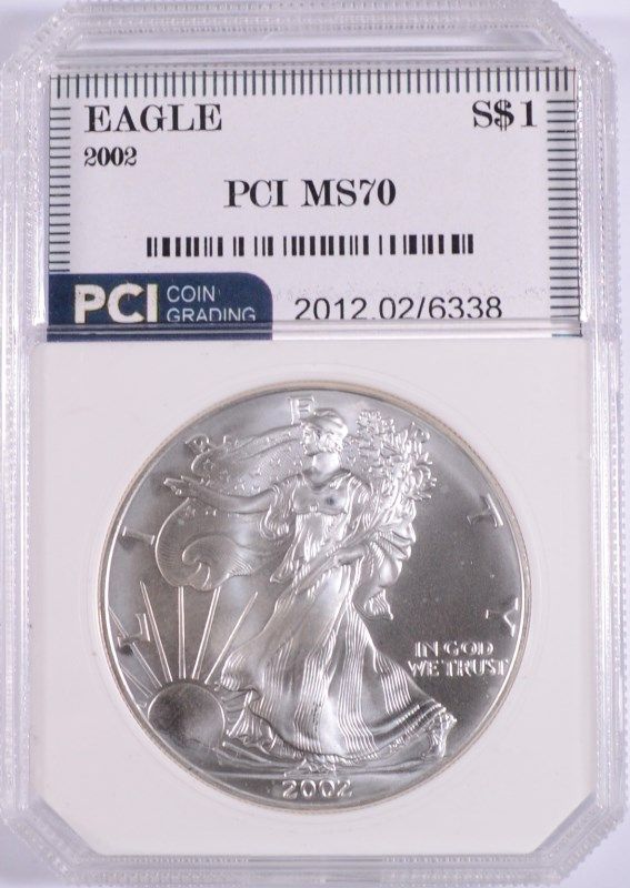 2002 AMERICAN SILVER EAGLE, PCI MS-70 RARE TRENDS PRICE $1250.00