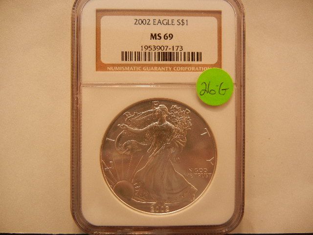 2002 American Silver Eagle, .999 Fine Silver, 1 Troy Oz., Graded by NGC MS69