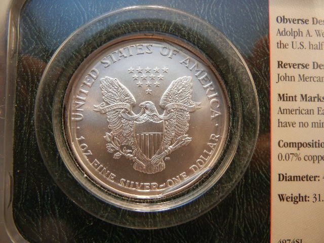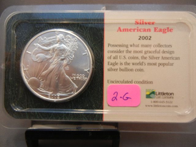 2002 American Silver Eagle, By Littleton Coin Co., UNC, .999 Fine Silver, 1 Troy Oz.