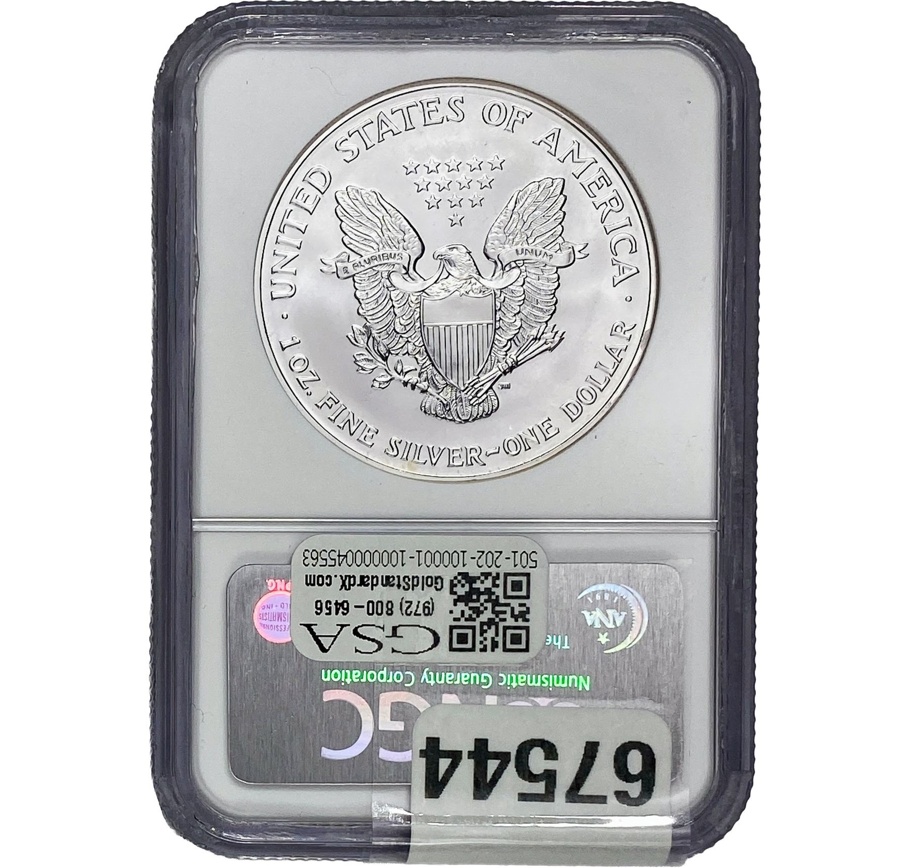 e. Coins sold referencing a third-party grading service are sold “AS IS” without any express or implied warranty, except for a guarantee by GSA that they are genuine. Removal or alteration of the holder, voids all of Bidder’s claims concerning that Product. Certain warranties may be available from the grading services and Bidders are referred to them for further details: Numismatic Guaranty Corporation (NGC), PO Box 4776, Sarasota, FL 34230, www.ngccoin.com/services/writtenguarantee.asp; Professional Coin Grading Services (PCGS), PO Box 9458, Newport Beach, CA 92658, www.pcgs.com/guarantee.html; ANACS, 6555 S. Kenton St., Ste. 303, Englewood, CO 80111; and Independent Coin Grading Co. (ICG), 7901 East Bellview, Ave., Suite 50, Englewood, CO 80111.