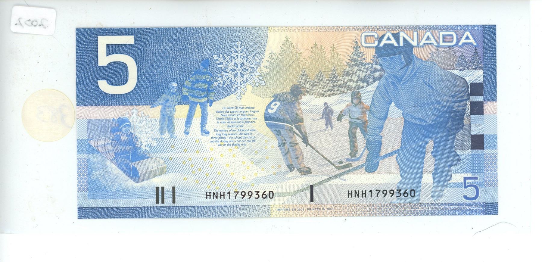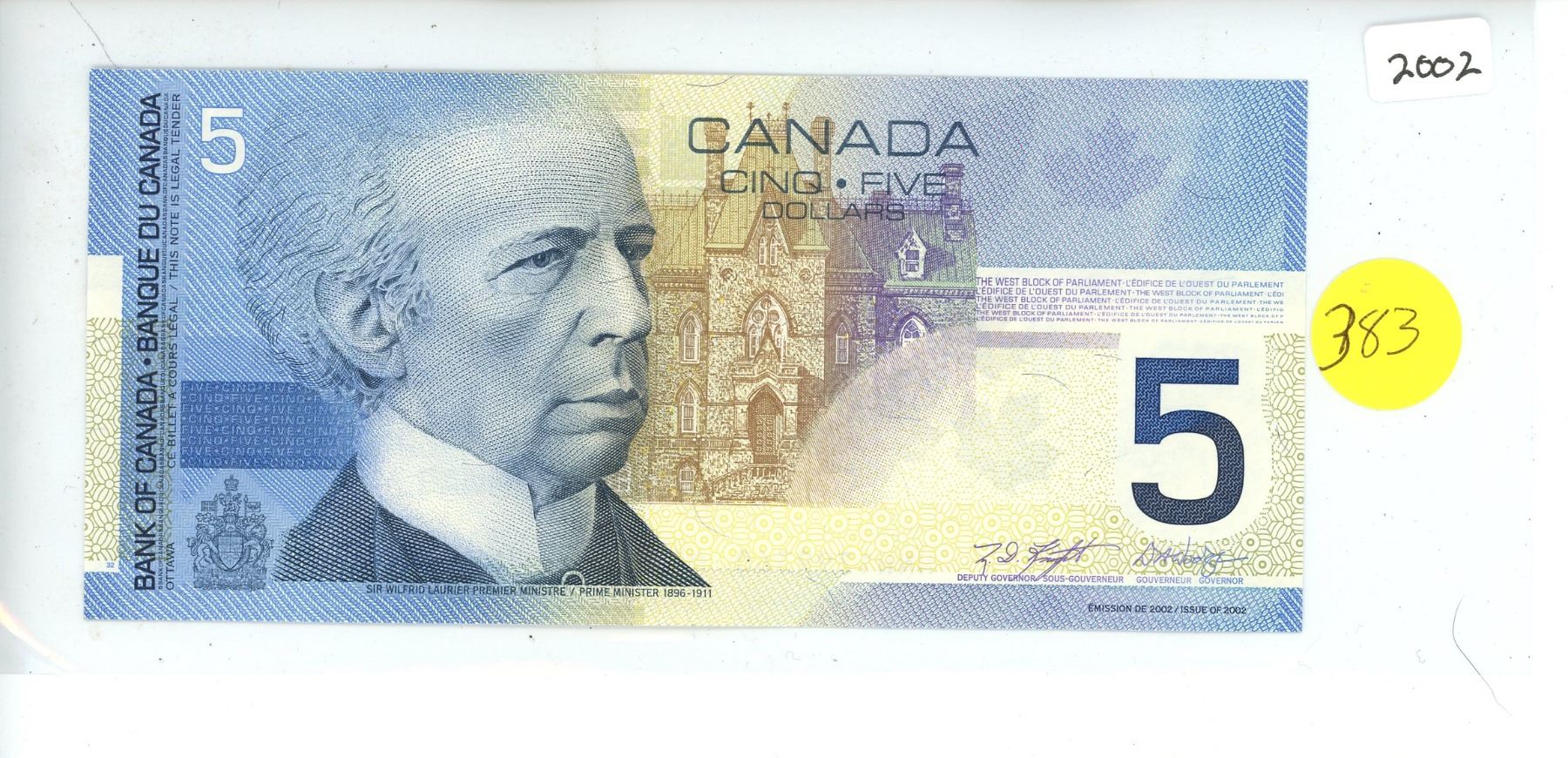 2002 Bank of Canada Five Dollar Note " CHOICE UNC"