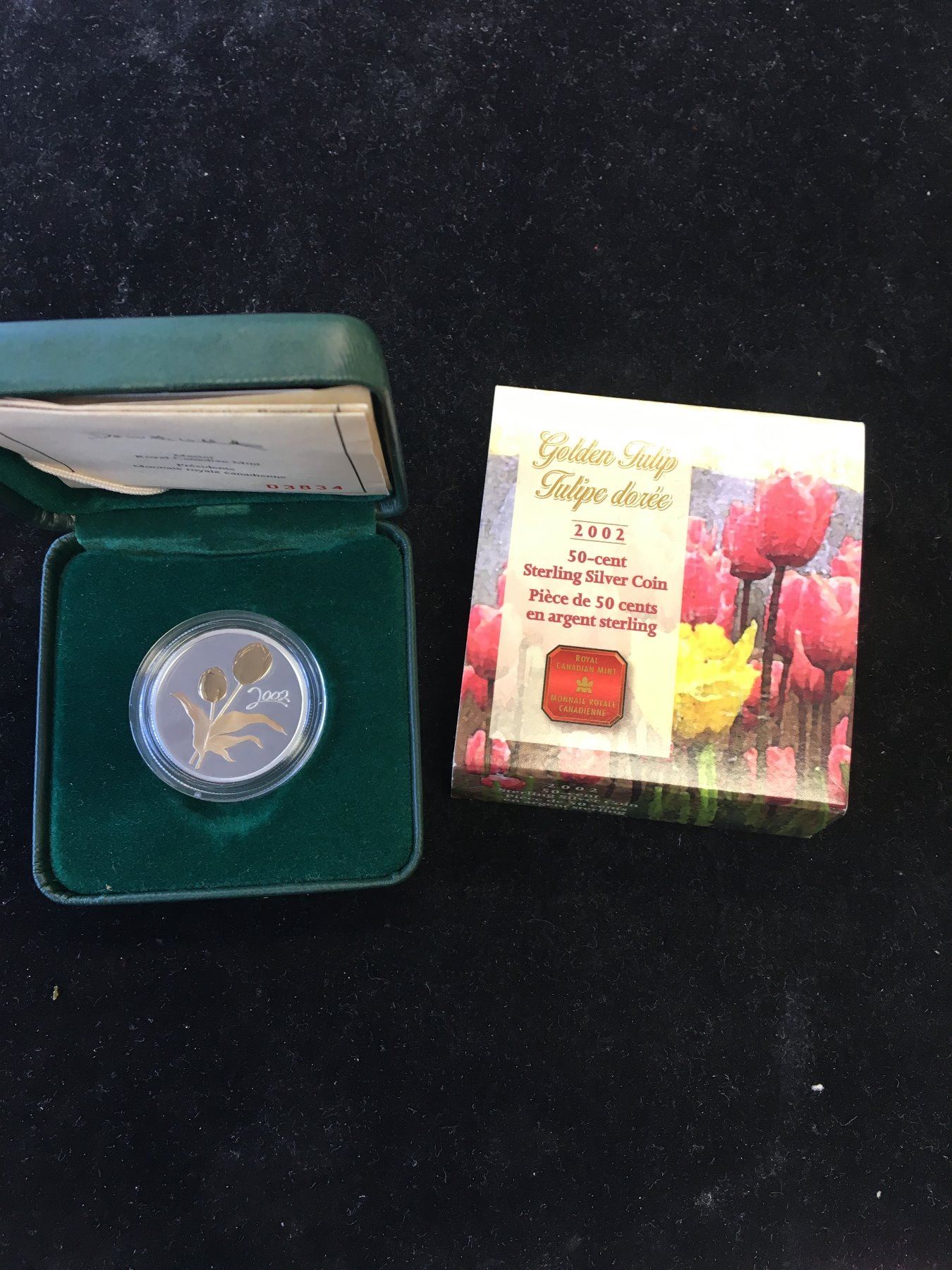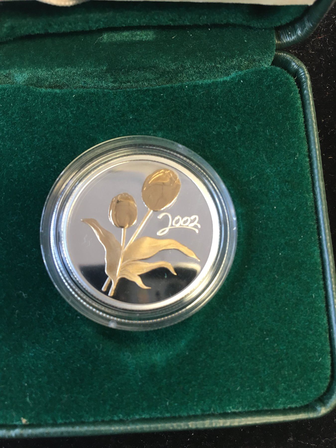 GOLD PLATED TULIP STERLING SILVER 50CENT COIN COME WITH ITS ORIGINAL CASE,DESCRIPTION CARD AND OUTER BOX