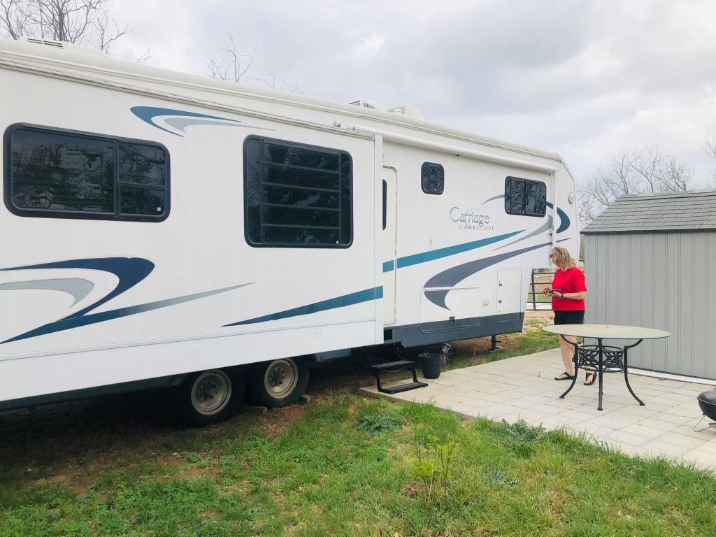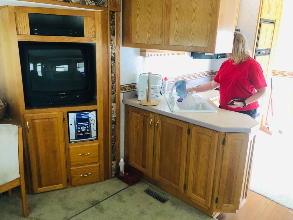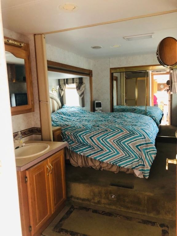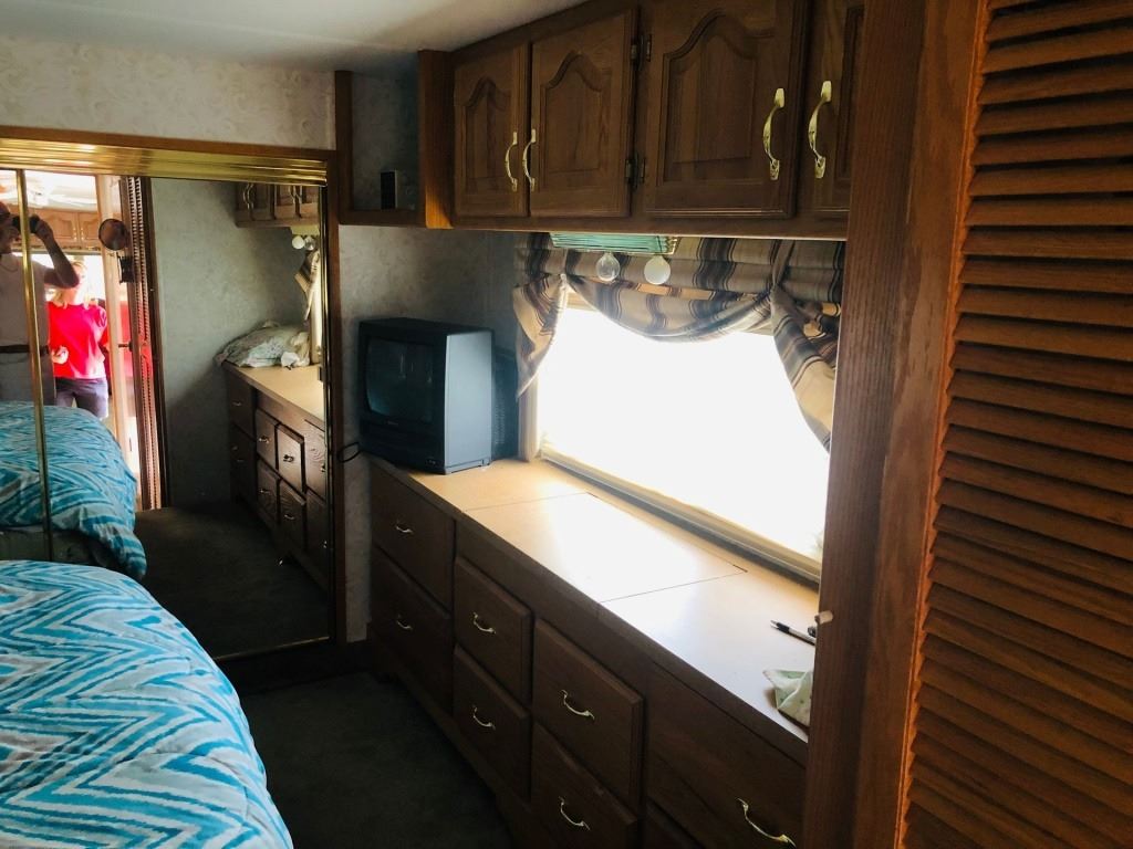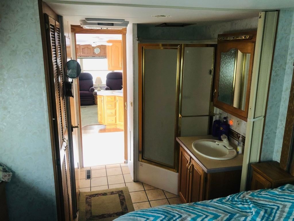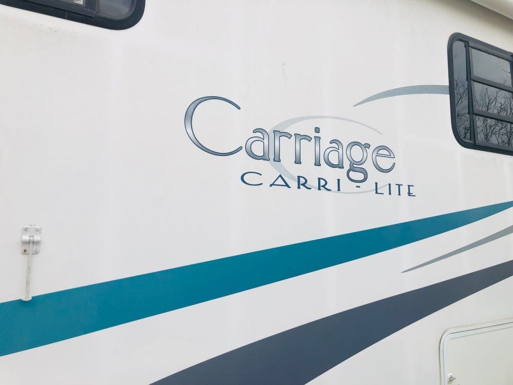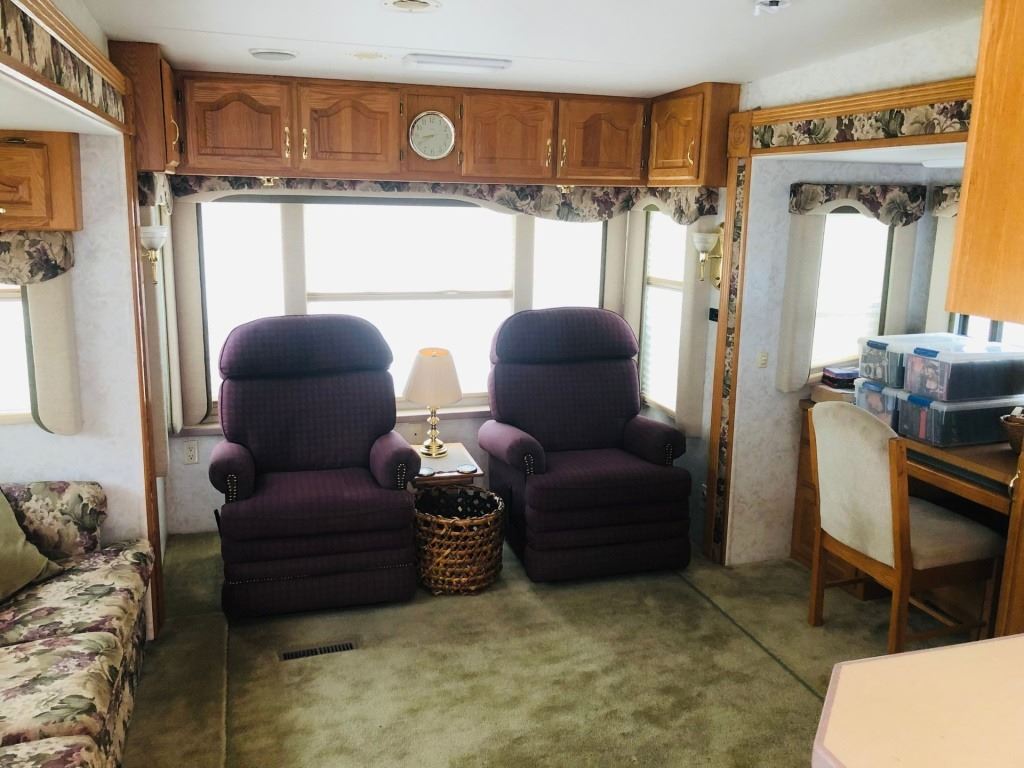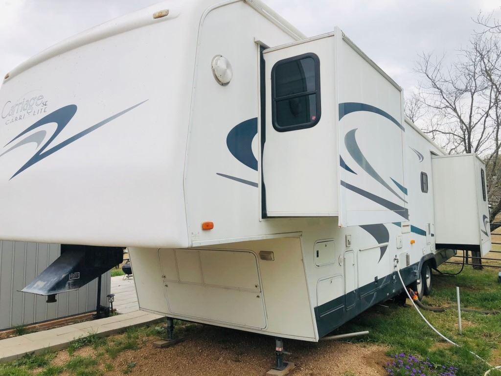 Amish built Carriage fifth wheel RV 3 slides hardwood cabinets. This is a high quality Amish built unit with real wood cabinetry with brass accented hardware, 3 slides for a very large interior feel and a built in stereo system. It features a split level separate bedroom with a walk in shower and separated toilet area. I spent about 10 grand on it when we bought it adding a 2nd air-conditioner, new roof and other items it needed. The exterior is in good shape. The interior is in real nice condition. It is a great inexpensive 2nd home to set up or put tires on it and start using it as a RV. VIN 16F62C5R921B15175