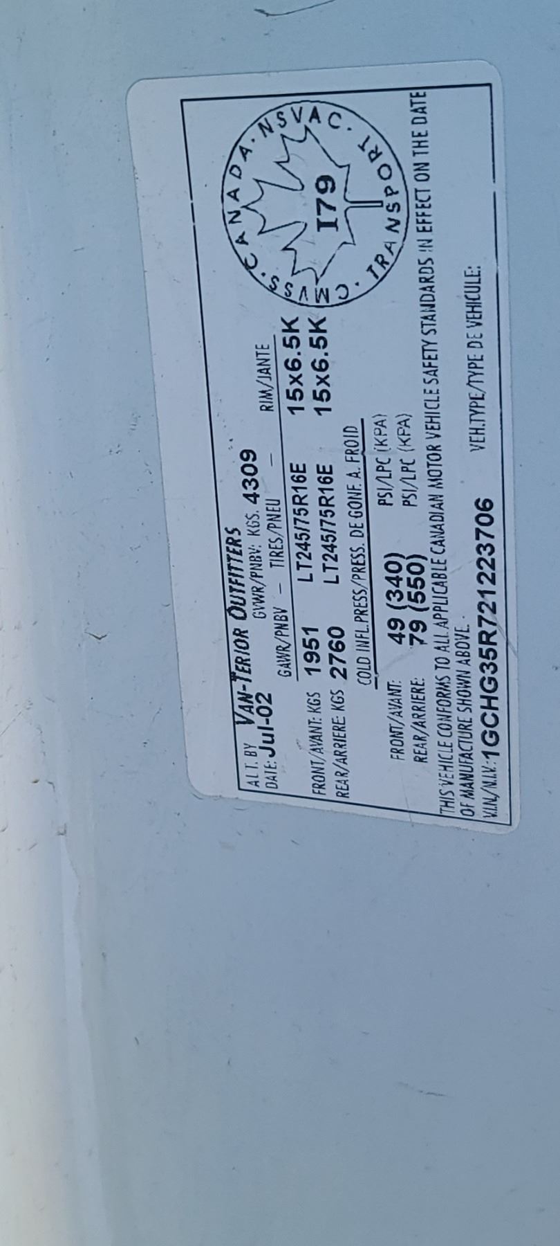 2002 CHEVROLET EXPRESS 3500 CARGO VAN WITH CONTENTS SN 1GCHG35R721223706