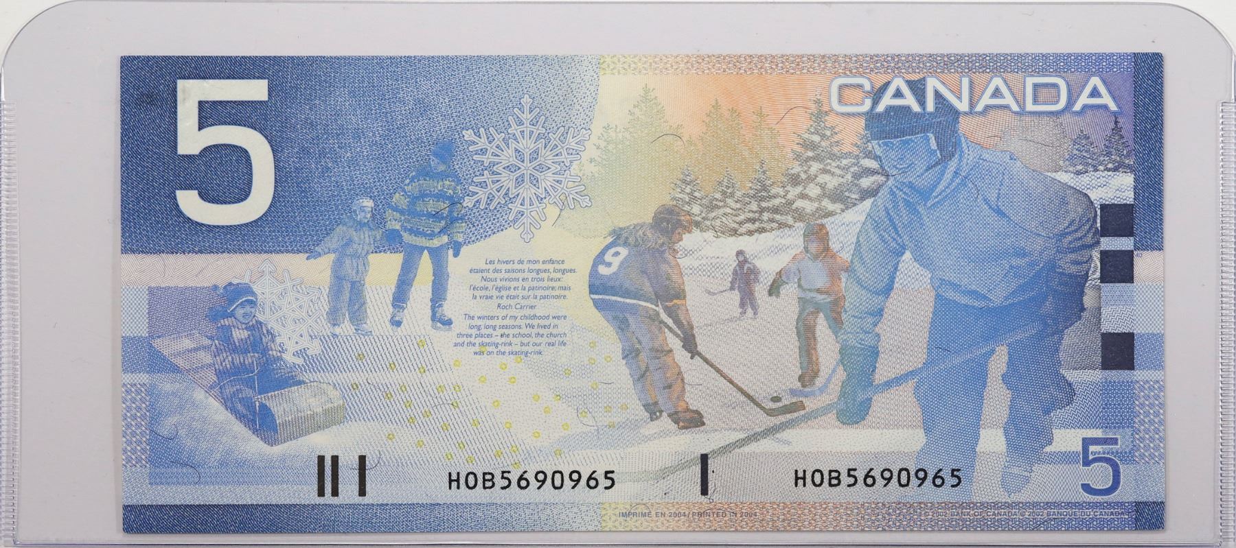 2002 Canada $5 BC-62b-N1-iii; Jenkins-Dodge, Four-Digit Radar, HOB5690965; UNC