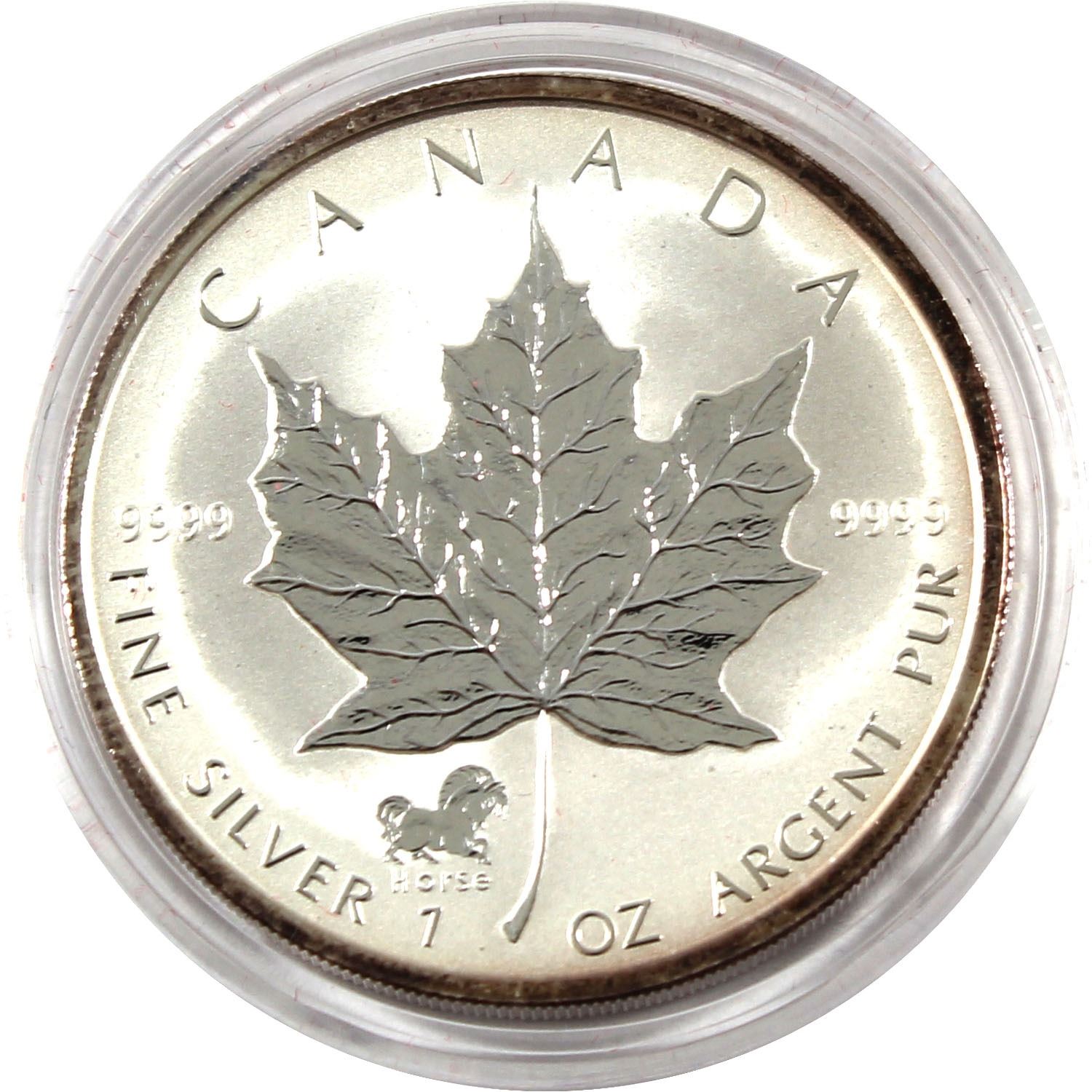 2002 Canada $5 Horse Privy 1oz Fine Silver Maple (Tax Exempt) Toning around Rim. Coin comes encapsulated.